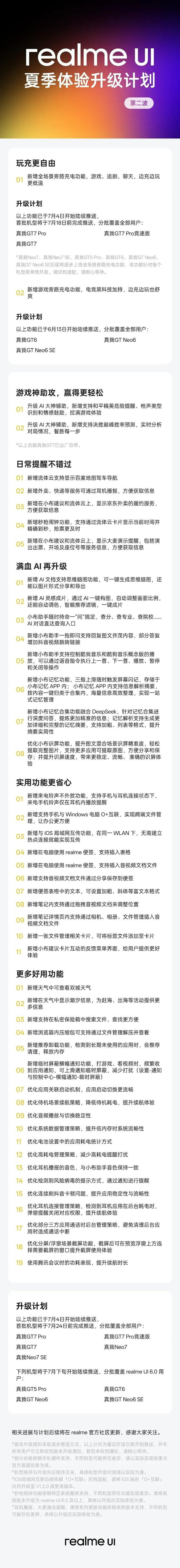 另外,realmeUI官方于近日宣布了《realme UI 夏季体验升级计划第二波》: